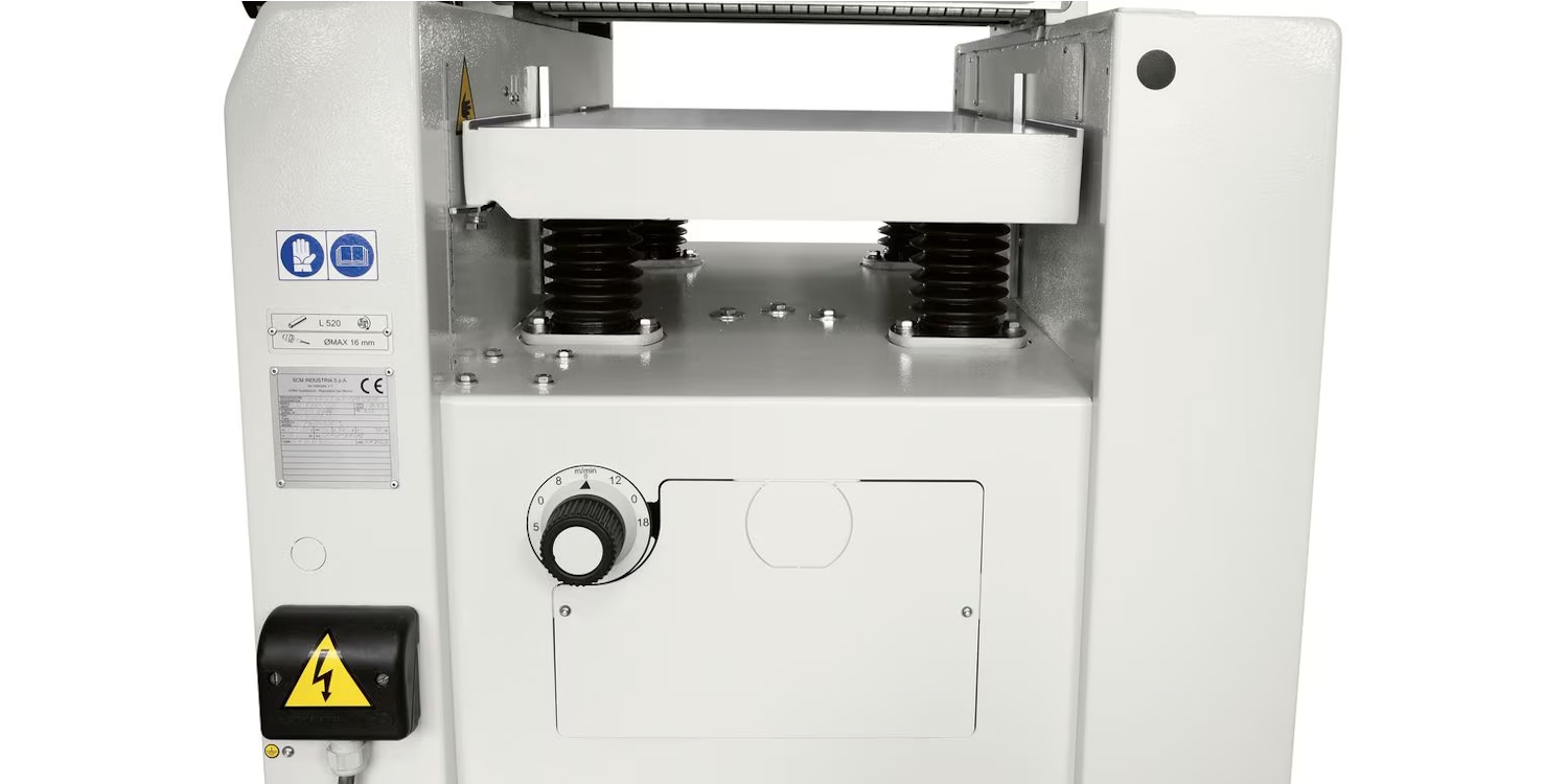 An optimal planing with minimal effort, thanks to the 95 mm diameter cutter block and 4 knives. For an impeccable finish the pressure of the thicknesser feed rollers can be adjusted according to the type of wood machined. The roller infeed has a helicoidal profile to guarantee firm and constant work piece feed, while the outfeed roller in sandblasted steel maintains the perfect post-processing finishing.