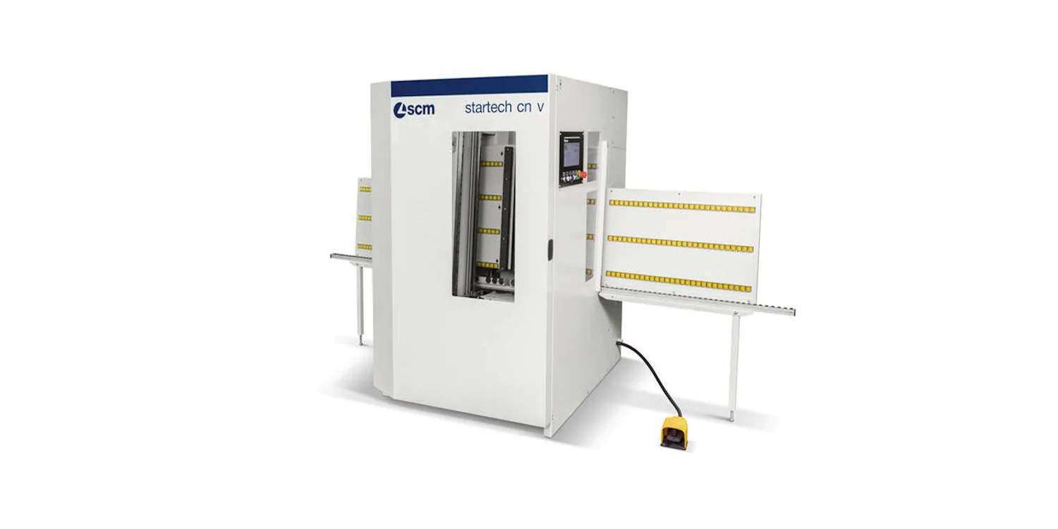 The SCM startech cn v drilling machine is the new CNC drilling machine with fixed work table and mobile workpiece.